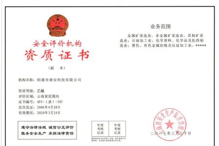 2003年11月10日,昭通市鼎安科技有限公司成立,初始主要從事第三方安全工程技術(shù)服務(wù),經(jīng)多年運(yùn)營(yíng),發(fā)展為多專業(yè)綜合科技平臺(tái),為社會(huì)提供多種專業(yè)技術(shù)服務(wù)工作。 現(xiàn)公司注冊(cè)資金為1200萬(wàn)元,公司法定代表人:毛衛(wèi)旭。公司主要業(yè)務(wù):安全評(píng)價(jià)、安全標(biāo)準(zhǔn)化評(píng)審、安全工程技術(shù)服務(wù);環(huán)境監(jiān)測(cè)、職業(yè)衛(wèi)生檢測(cè)、檢驗(yàn);法律訴訟及非訴訟服務(wù);司法鑒定、固定資產(chǎn)投資項(xiàng)目節(jié)能服務(wù);工程咨詢;工程測(cè)量測(cè)繪;安全教育培訓(xùn)等。是安全生產(chǎn)服務(wù)、安全教育培訓(xùn)機(jī)構(gòu),也是環(huán)境監(jiān)測(cè)和職業(yè)衛(wèi)生服務(wù)機(jī)構(gòu),同時(shí)也是綜合的檢測(cè)檢驗(yàn)、綜合科技平臺(tái)服務(wù)機(jī)構(gòu)。多年來(lái)為公、檢、法、司、軍、警、海關(guān)、仲裁、安監(jiān)、工礦商貿(mào)企業(yè)、社會(huì)團(tuán)體及個(gè)人提供多專業(yè)技術(shù)服務(wù)。